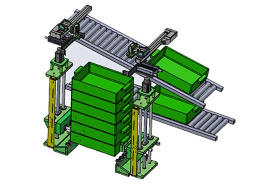 物流緩存進出單元基于一個流的工藝過程,在設(shè)備工藝中進行上下料物料的緩存,以提到提高緩存量,提高物流效率的設(shè)計。